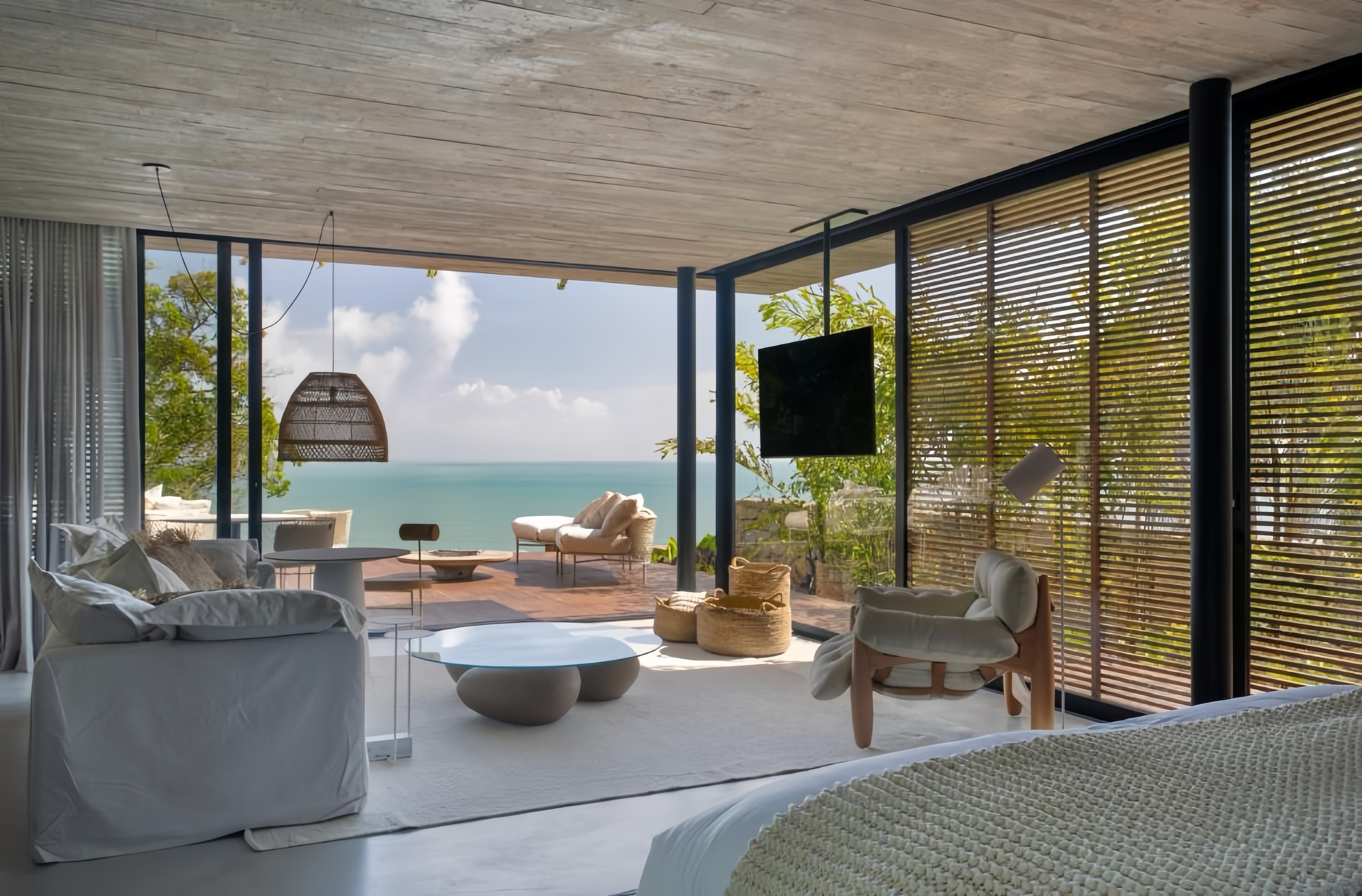 Localizado a 2 minutos da Praia de Jurerê e com vista panorâmica